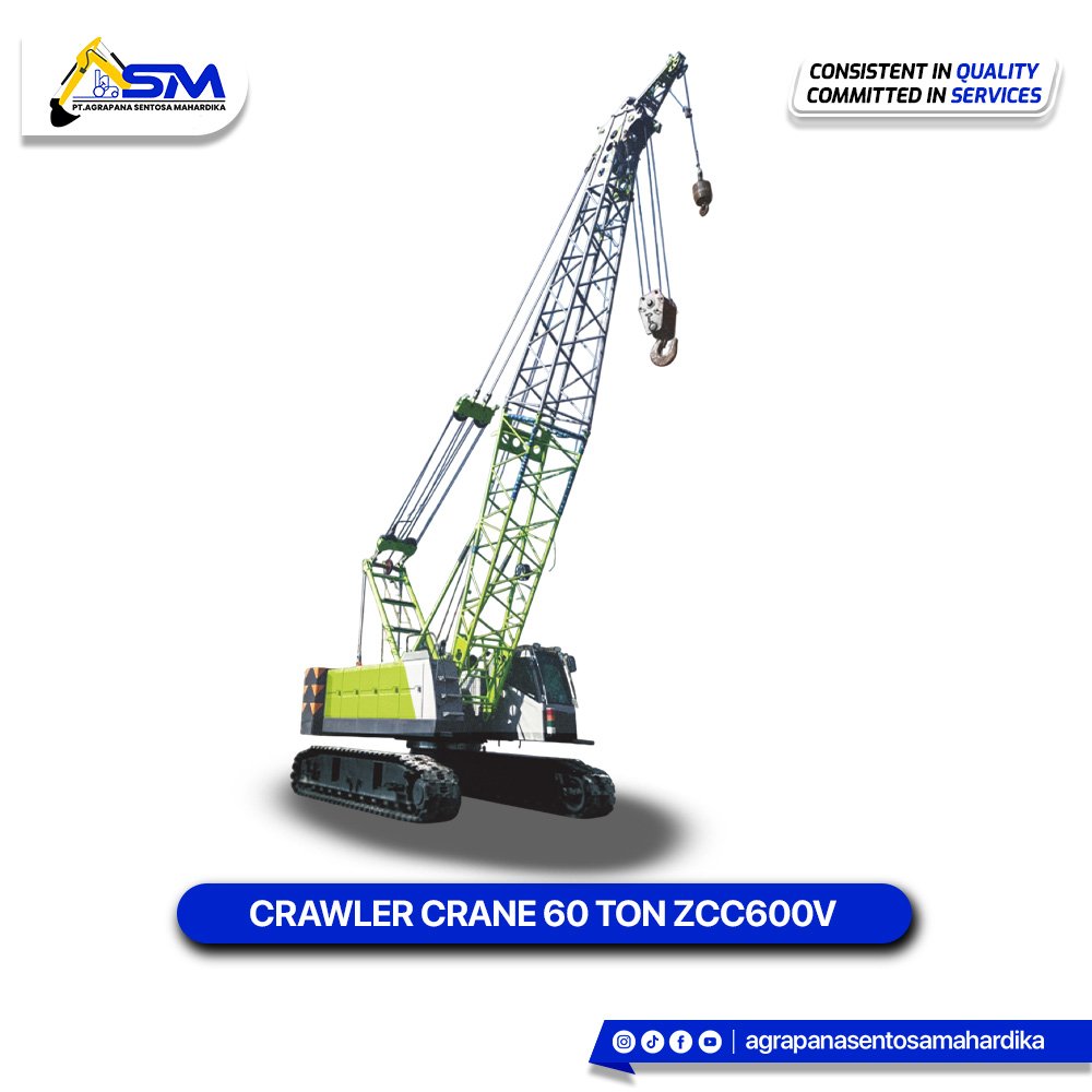 ZCC600V Crawler Crane is a 60-ton capacity crawler crane with an operating weight of approximately 49.5t. It features a 52m max main boom and a 15m max fixed jib, allowing for a max combination of 43m main boom + 15m jib. The crane is highly efficient with a max single rope speed of 145 m/min and uses a pilot proportional control hydraulic system. Its design prioritizes easy transport, with a max width of 3m when tracks are retracted.