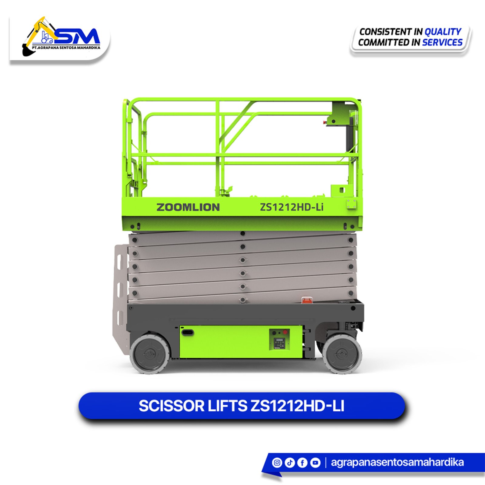 The Zoomlion ZS1212HD-Li is a scissor lift from the HD-Li series, powered by a 230Ah Li-ion battery. It offers a maximum working height of 13.80m (45ft 3in) and a platform capacity of 350kg (770lb). Key features include a 5-year battery warranty , a Smart Battery Management System (BMS) , and the ability to be driven at full height. The unit has a gross weight of 2970kg (6550lb).